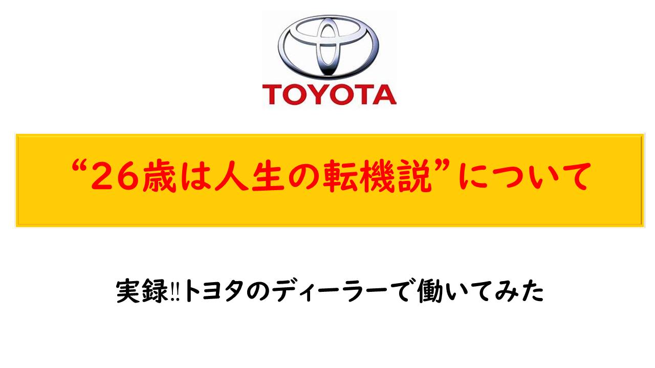 26歳の頃の私は”石の上にも三年”という古くから伝わる教えに従い、3年間どっぷりとディーラーの仕事に没頭していましたが、3年を過ぎるころから”ずっとこの仕事でいいのか⁉”と悩み始めたてもいました。